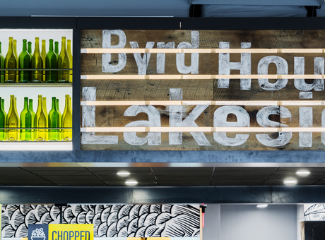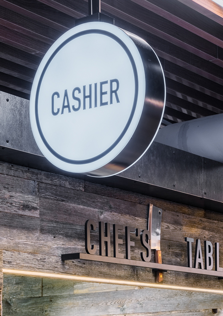The food hall contains different culinary stations so we wanted to create a unique set of illustrations and graphic treatments to give each area some individuality. Not only did we create signage for each individual station, we also had to create a menu location for each area and other necessary signage to create adequate traffic flow to ordering. The overall experience is rich in detail and diverse in styles; this gives the food hall a market feel with hand painted signage, internally lit signage, large scale graphics and murals.
