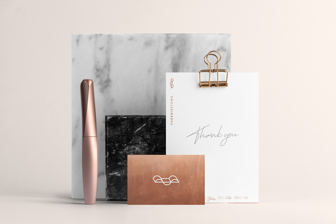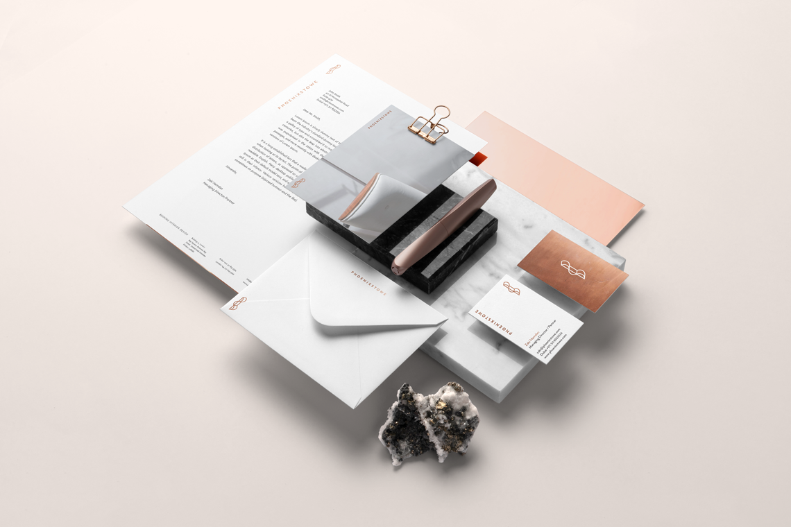 A simple combination of two letters from its name creates a strong yet simple form that is classic, universal and familiar. We took the “p” and “s” and developed an isometric view using cylinders to construct the logo mark. In order to establish a sense of elegance, we used materiality, in this case cooper, to evoke luxury and a tactile quality. With use of powerful architectural detail photography, the visual system is serene in language but powerful in emotion.